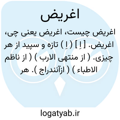 اغریض. [ اِ ] ( اِ ) تازه و سپید از هر چیزی. ( از منتهی الارب ) ( از ناظم الاطباء ) ( ازآنندراج ). هر چیز سپید تازه. کل ابیض طری. ( اقرب الموارد ). || شکوفه. ( از منتهی الارب ) ( آنندراج ) ( ناظم الاطباء ). شکوفه کاردو. ( مهذب الاسماء ). شکوفه نخستین خرما. طلع. ( از اقرب الموارد ). || نوباوه. ( از منتهی الارب ) ( آنندراج ) ( ناظم الاطباء ). || قطره بزرگی که چون بیفتد مانند بیخهای تیر بنظر آید. ج، اغاریض. ( از اقرب الموارد ).