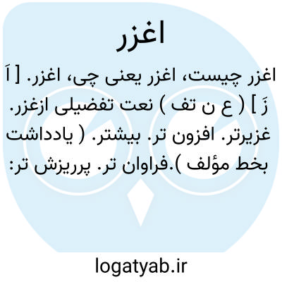 لغت نامه دهخدا اغزر. [ اَ زَ ] ( ع ن تف ) نعت تفضیلی ازغزر. غزیرتر. افزون تر. بیشتر. ( یادداشت بخط مؤلف ).فراوان تر. پرریزش تر: و کلما کان البحر اغزروا بعد قعراً کان العنبر اجود. ( اخبار العین و الهند ص 6 ). واما الزیبق والذهب و سائر ما یکون فی العماد فاغزرها مایرتفع من ماوراءالنهر. ( صورة الاقالیم اصطخری ).