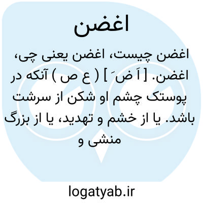 اغضن. [ اَ ض َ ] ( ع ص ) آنکه در پوستک چشم او شکن از سرشت باشد. یا از خشم و تهدید، یا از بزرگ منشی و کبر. ( منتهی الارب ) ( ناظم الاطباء ). آن کسی که در چشم او از سرشت یا از خشم یا از کبر شکنی باشد. الکاسرعینه خلقة او عداوة او کبراً. ( از اقرب الموارد ).