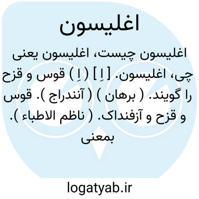 اغلیسون. [ اِ ] ( اِ ) قوس و قزح را گویند. ( برهان ) ( آنندراج ). قوس و قزح و آزفنداک. ( ناظم الاطباء ). بمعنی قوس و قزح نوشته اند. ( انجمن آرای ناصری ). || آدینه.