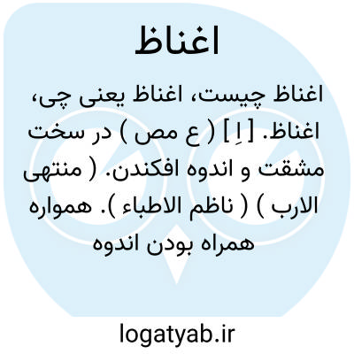 اغناظ. [ اِ ] ( ع مص ) در سخت مشقت و اندوه افکندن. ( منتهی الارب ) ( ناظم الاطباء ). همواره همراه بودن اندوه کسی را. لغتی است در غنظة. ( از اقرب الموارد ).در سختی و مشقت و اندوه افکندن. ( یادداشت مؤلف ).