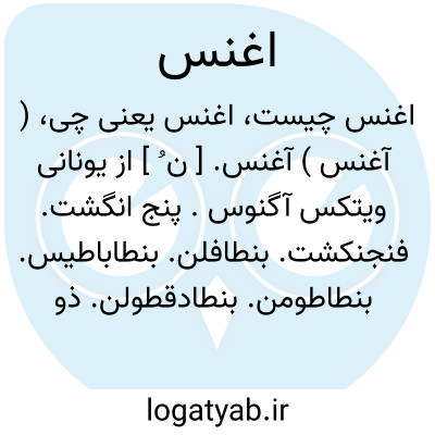 ( آغنس ) آغنس. [ ن ُ ] از یونانی ویتکس آگنوس. پنج انگشت. فنجنکشت. بنطافلن. بنطاباطیس. بنطاطومن. بنطادقطولن. ذو خمسة اوراق. ذو خمسة اصابع. دل آشوب. سکسنبویه. فقد. فقده. سیسبان. اثلق. فنطافلون. و آغلیس و آغیش مصحف این کلمه است.