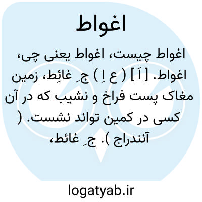 اغواط. [ اَ ] ( ع اِ ) ج ِ غائِط، زمین مغاک پست فراخ و نشیب که در آن کسی در کمین تواند نشست. ( آنندراج ). ج ِ غائط، زمین مغاک پست فراخ. ( از منتهی الارب )( ناظم الاطباء ). غِیاط. غیطان. غوط. ( منتهی الارب ).