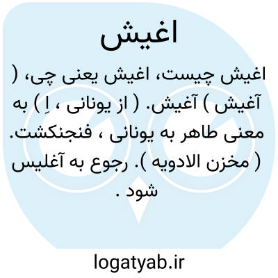 لغت نامه دهخدا ( آغیش ) آغیش. ( از یونانی، اِ ) به معنی طاهر به یونانی، فنجنکشت. ( مخزن الادویه ). رجوع به آغلیس شود.