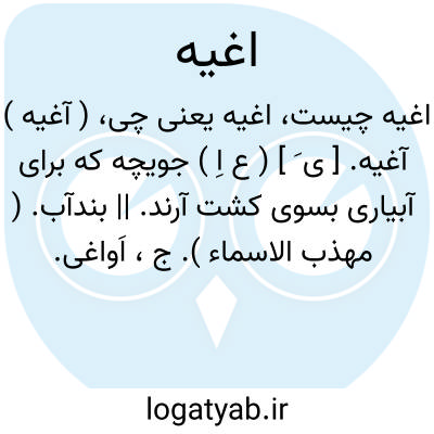 ( آغیه ) آغیه. [ ی َ ] ( ع اِ ) جویچه که برای آبیاری بسوی کشت آرند. || بندآب. ( مهذب الاسماء ). ج، اَواغی.