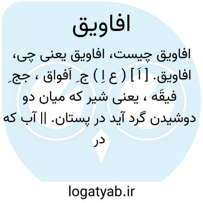افاویق. [ اَ ] ( ع اِ ) ج ِ اَفواق، جج ِ فیقَه، یعنی شیر که میان دو دوشیدن گرد آید در پستان. || آب که در ابر فراهم آید و ساعت بساعت بارد. ( منتهی الارب ) ( ناظم الاطباء ). || افاویق اللیل؛ اکثر از شب. ( منتهی الارب ) ( از ناظم الاطباء ).
