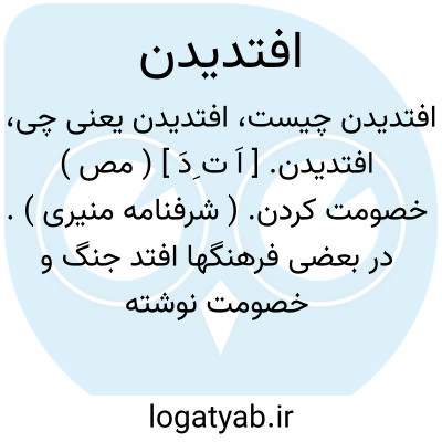 افتدیدن. [ اَ ت ِدَ ] ( مص ) خصومت کردن. ( شرفنامه منیری ). در بعضی فرهنگها افتد جنگ و خصومت نوشته است اقول آن افند با نون خواهد بود. ( مؤید ).