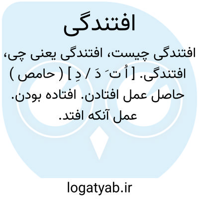 افتندگی. [ اُ ت َ دَ / دِ ] ( حامص ) حاصل عمل افتادن. افتاده بودن. عمل آنکه افتد.
