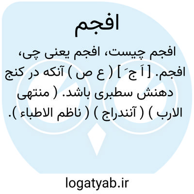 افجم. [ اَ ج َ ] ( ع ص ) آنکه در کنج دهنش سطبری باشد. ( منتهی الارب ) ( آنندراج ) ( ناظم الاطباء ).