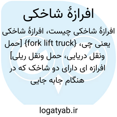 {fork lift truck} [حمل ونقل دریایی، حمل ونقل ریلی] افرازه ای دارای دو شاخک که در هنگام جابه جایی بار، شاخک های آن به داخل نیام بارگُنج ها یا راهۀ بارکف ها فرومی رود