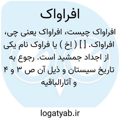 افراواک. [ ] ( اِخ ) یا فراوک نام یکی از اجداد جمشید است. رجوع به تاریخ سیستان و ذیل آن ص 3 و 4 و آثارالباقیه بیرونی ص 103 شود.