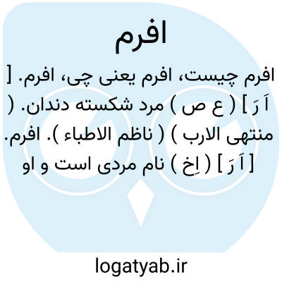 افرم. [ اَ رَ ] ( ع ص ) مرد شکسته دندان. ( منتهی الارب ) ( ناظم الاطباء ).