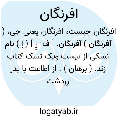 ( آفرنگان ) آفرنگان. [ ف َ رِ ] ( اِ ) نام نسکی از بیست ویک نسک کتاب زند. ( برهان ):