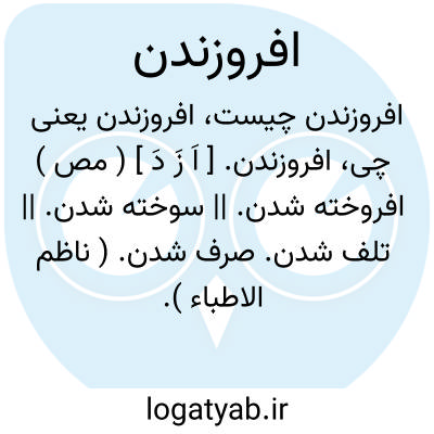 لغت نامه دهخدا افروزندن. [ اَ زَ دَ ] ( مص ) افروخته شدن. || سوخته شدن. || تلف شدن. صرف شدن. ( ناظم الاطباء ).