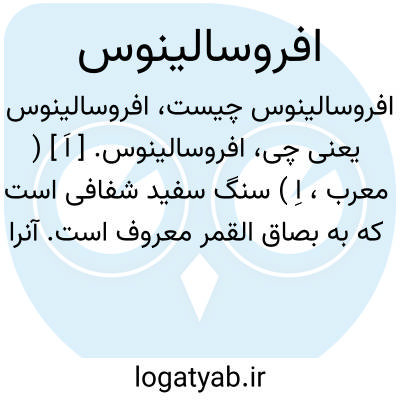 افروسالینوس. [ اَ ] ( معرب، اِ ) سنگ سفید شفافی است که به بصاق القمر معروف است. آنرا بزبان رومی افروسالینوس یعنی زبدالقمر نامند، زیرا سالین همان قمر است. ( از الجماهربیرونی ص 182 ).