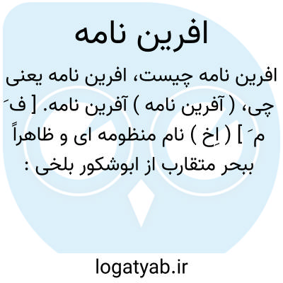 ( آفرین نامه ) آفرین نامه. [ ف َ م َ ] ( اِخ ) نام منظومه ای و ظاهراً ببحر متقارب از ابوشکور بلخی: