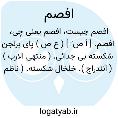 افصم. [ اَ ص َ ] ( ع ص ) پای برنجن شکسته بی جدائی. ( منتهی الارب ) ( آنندراج ). خلخال شکسته. ( ناظم الاطباء ) ( از اقرب الموارد ).