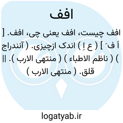 افف. [ اَ ف َ ] ( ع اِ ) اندک ازچیزی. ( آنندراج ) ( ناظم الاطباء ) ( منتهی الارب ). || قلق. ( منتهی الارب ) ( ناظم الاطباء ). || هنگام. ( منتهی الارب ) ( آنندراج ) ( ناظم الاطباء ).