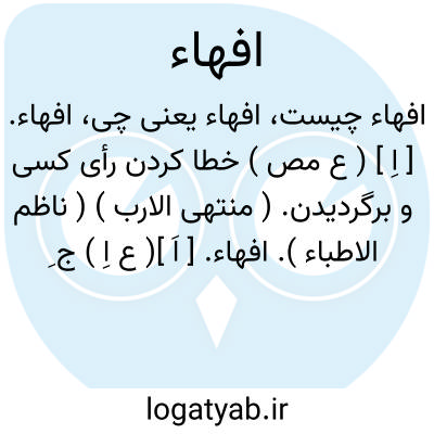افهاء. [ اِ ] ( ع مص ) خطا کردن رأی کسی و برگردیدن. ( منتهی الارب ) ( ناظم الاطباء ).