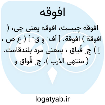 ( افوقة ) افوقة. [ اَف ْ وِ ق َ ] ( ع ص، اِ ) ج ِ فُیاق، بمعنی مرد بلندقامت. ( منتهی الارب ). ج ِ فُواق و فَواق. ( ناظم الاطباء ).
