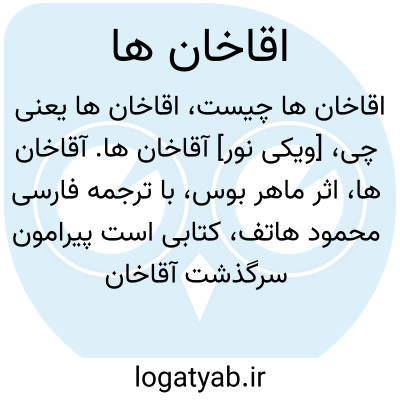 [ویکی نور] آقاخان ها. آقاخان ها، اثر ماهر بوس، با ترجمه فارسی محمود هاتف، کتابی است پیرامون سرگذشت آقاخان ها که رهبری یکی از جوامع اسماعیلیه را که در هند غربی، پاکستان، شرق آفریقا و در خاورمیانه و ایران سکونت دارند، به عهده داشته و دارند.