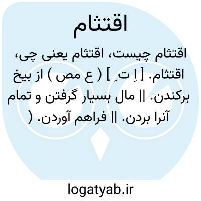 اقتثام. [ اِ ت ِ ] ( ع مص ) از بیخ برکندن. || مال بسیار گرفتن و تمام آنرا بردن. || فراهم آوردن. ( منتهی الارب ) ( ناظم الاطباء ).