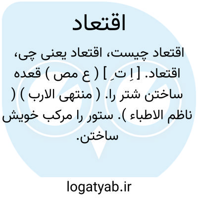 لغت نامه دهخدا اقتعاد. [ اِ ت ِ ] ( ع مص ) قعده ساختن شتر را. ( منتهی الارب ) ( ناظم الاطباء ). ستور را مرکب خویش ساختن.