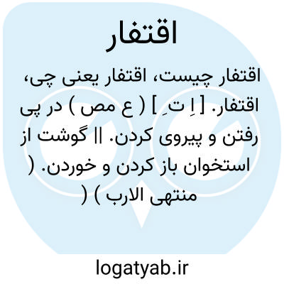 اقتفار. [ اِ ت ِ ] ( ع مص ) در پی رفتن و پیروی کردن. || گوشت از استخوان باز کردن و خوردن. ( منتهی الارب ) ( ناظم الاطباء ) ( آنندراج ).