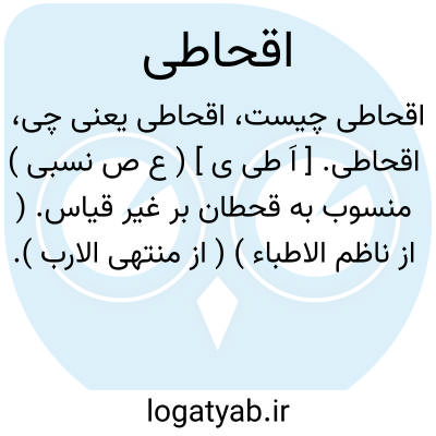 لغت نامه دهخدا اقحاطی. [ اَ طی ی ] ( ع ص نسبی ) منسوب به قحطان بر غیر قیاس. ( از ناظم الاطباء ) ( از منتهی الارب ).