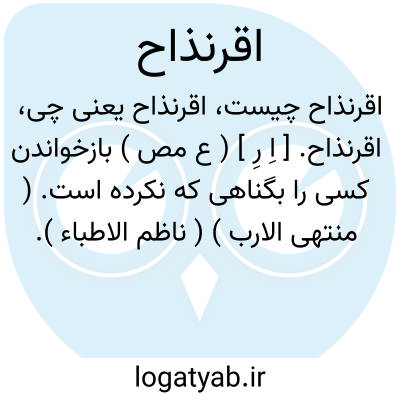 لغت نامه دهخدا اقرنذاح. [ اِ رِ ] ( ع مص ) بازخواندن کسی را بگناهی که نکرده است. ( منتهی الارب ) ( ناظم الاطباء ).