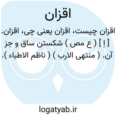 اقزان. [ اِ ] ( ع مص ) شکستن ساق و جز آن. ( منتهی الارب ) ( ناظم الاطباء ).