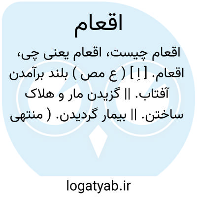 اقعام. [ اِ ] ( ع مص ) بلند برآمدن آفتاب. || گزیدن مار و هلاک ساختن. || بیمار گردیدن. ( منتهی الارب ) ( ناظم الاطباء ) ( آنندراج ).