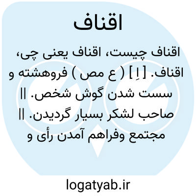 اقناف. [ اِ ] ( ع مص ) فروهشته و سست شدن گوش شخص. || صاحب لشکر بسیار گردیدن. || مجتمع وفراهم آمدن رأی و تدبیر کسی. || درست شدن کار کسی. ( منتهی الارب ) ( ناظم الاطباء ) ( آنندراج ).