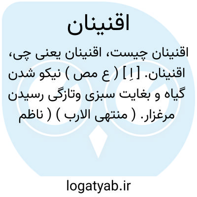 اقنینان. [ اِ ] ( ع مص ) نیکو شدن گیاه و بغایت سبزی وتازگی رسیدن مرغزار. ( منتهی الارب ) ( ناظم الاطباء ).