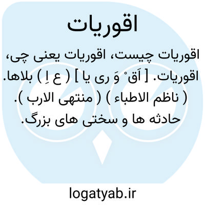 اقوریات. [ اَق ْ وَ ری یا ] ( ع اِ ) بلاها. ( ناظم الاطباء ) ( منتهی الارب ). حادثه ها و سختی های بزرگ.