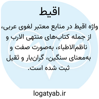 واژۀ اَقیط در منابع معتبر لغوی عربی، از جمله کتاب‌های منتهی الارب و ناظم‌الاطباء، به‌صورت صفت و به‌معنای سنگین، گران‌بار و ثَقیل ثبت شده است. این کلمه در کاربردهای کهن زبانی، برای توصیف هر چیزی که دارای وزن قابل‌توجه باشد یا بار زیادی را متحمل شده باشد، به‌کار می‌رفته است. با توجه به ساختار صرفی زبان عربی، این واژه از ریشۀ خاصی مشتق شده و در دستور زبان، نقش صفت فاعلی یا وصفی ایفا می‌کند که دلالت بر حالت سنگینی و ثقل دارد. کاربرد آن بیشتر در متون ادبی یا تاریخی دیده می‌شود و امروزه در گفتار روزمره کمتر رایج است. در مجموع، می‌توان گفت اَقیط یک اصطلاح کهن و ادبی است که بر سنگینی و گرانی دلالت دارد و شناخت آن بیشتر برای افرادی سودمند است که با متون کلاسیک عربی یا مطالعات لغوی سروکار دارند. این واژه گواهی بر غنای زبان عربی و دقت آن در بیان مفاهیم مختلف است.