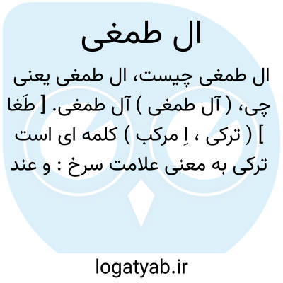 ( آل طمغی ) آل طمغی. [ طَغا ] ( ترکی، اِ مرکب ) کلمه ای است ترکی به معنی علامت سرخ: و عند باب الخرقة النائب و الوزیر و الحاجب و صاحب العلامة و هم یسمون آل طمغی، و آل معناه الاحمر و طمغی... معناه العلامة. ( رحله ابن بطوطه: آل تمغا ).