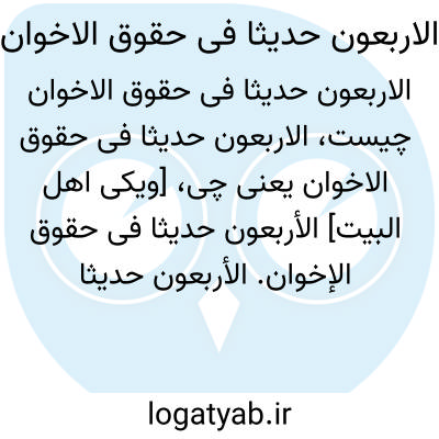 [ویکی اهل البیت] الأربعون حدیثا فی حقوق الإخوان. الأربعون حدیثا فی حقوق الإخوان تألیف محی الدین محمد بن عبدالله الحسینی ابن زهره الحلبی از جمله کتاب های حدیثی - اخلاقی به شمار می رود.