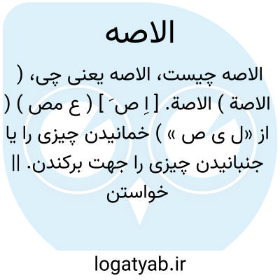 ( الاصة ) الاصة. [ اِ ص َ ] ( ع مص ) ( از «ل ی ص » ) خمانیدن چیزی را یا جنبانیدن چیزی را جهت برکندن. || خواستن از کسی چنین و چنان. ( منتهی الارب ).