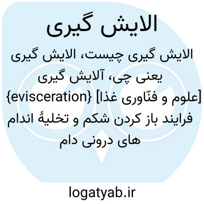 فرهنگستان زبان و ادب آلایش گیری{evisceration} [علوم و فنّاوری غذا] فرایند باز کردن شکم و تخلیۀ اندام های درونی دام