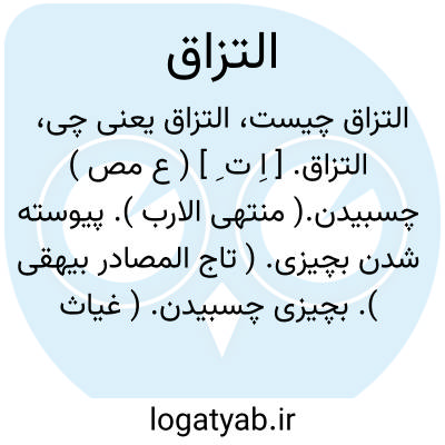التزاق. [ اِ ت ِ ] ( ع مص ) چسبیدن.( منتهی الارب ). پیوسته شدن بچیزی. ( تاج المصادر بیهقی ). بچیزی چسبیدن. ( غیاث اللغات ). بچیزی وادوسیدن.
