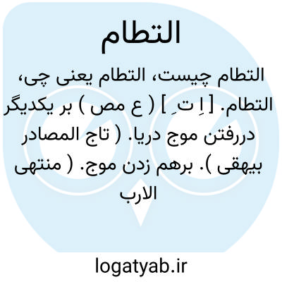 التطام. [ اِ ت ِ ] ( ع مص ) بر یکدیگر دررفتن موج دریا. ( تاج المصادر بیهقی ). برهم زدن موج. ( منتهی الارب ). بیکدیگر زدن موجها. ( مؤید الفضلاء ).