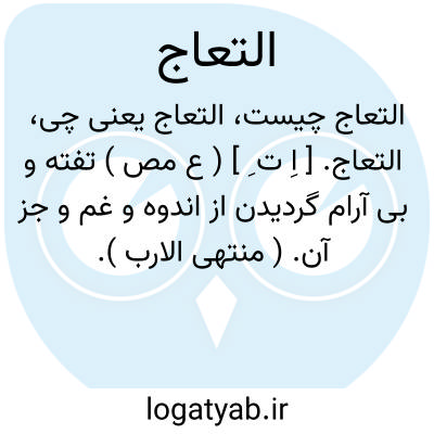 لغت نامه دهخدا التعاج. [ اِ ت ِ ] ( ع مص ) تفته و بی آرام گردیدن از اندوه و غم و جز آن. ( منتهی الارب ).