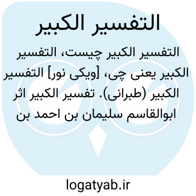 [ویکی نور] التفسیر الکبیر (طبرانی). تفسیر الکبیر اثر ابوالقاسم سلیمان بن احمد بن ایوب طبرانی (260- 360ق)، با تحقیق و تصحیح هشام بن عبدالکریم بدرانی موصلی، کتابی است پیرامون علم تفسیر که به زبان عربی و حدوداً در اوایل قرن سوم هجری نوشته شده است.
