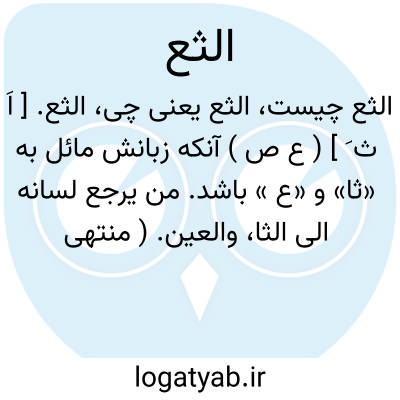 الثع. [ اَ ث َ ] ( ع ص ) آنکه زبانش مائل به «ثا» و «ع » باشد. من یرجع لسانه الی الثا، والعین. ( منتهی الارب ) ( اقرب الموارد ). آنکه «س » را «ث »و «ر» را «ل » یا «غ » تلفظ کند. ( از مهذب الاسماء ).