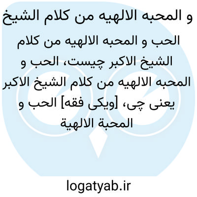 [ویکی فقه] الحب و المحبه الالهیه من کلام الشیخ الاکبر (کتاب). «الحب و المحبة الالهیة من کلام الشیخ الاکبر محی الدین ابن العربی» گردآوری موضوع محبت در آثار شیخ اکبر به همت محمود محمود الغراب می باشد. وی در این کتاب شرحی از نظرات و حالات ابن عربی در باب محبت الهی و مقام محبوبیت گرد آورده است.