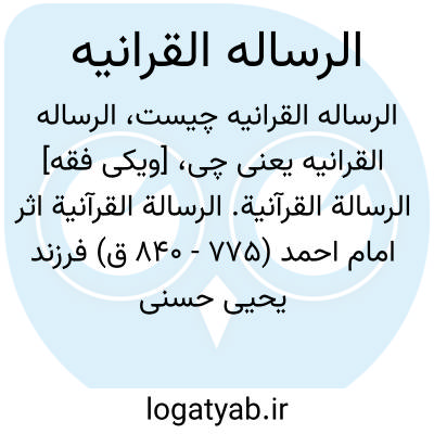 [ویکی فقه] الرسالة القرآنیة. الرسالة القرآنیة اثر امام احمد (۷۷۵ - ۸۴۰ ق) فرزند یحیی حسنی ملقب به المهدی لدین اللّه، از سلاطین و ائمه زیدیه یمن می باشد.