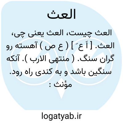 العث. [ اَ ع َ ] ( ع ص ) آهسته رو گران سنگ. ( منتهی الارب ). آنکه سنگین باشد و به کندی راه رود. مؤنث: لَعْثاء. ( از اقرب الموارد ).