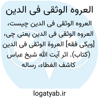 [ویکی فقه] العروة الوثقی فی الدین (کتاب). اثر آیت الله شیخ عباس کاشف الغطاء، رساله ای است فتوایی که بحث صلات و اموری که مناسبت زیادی با مسایل نماز دارد در آن گردآوری شده است. این کتاب از سوی مکتبه کاشف الغطا به سال ۱۴۲۳ ق در شهر نجف اشرف منتشر شده است.