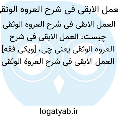 مطالعه کتاب العمل الأبقی فی شرح العروة الوثقی در پایگاه کتابخانه دیجیتال نور